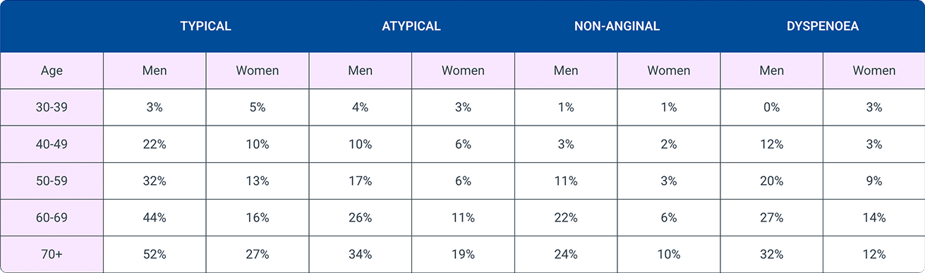 Typical | Atypical | Non-anginal | Dyspnoea | |||||